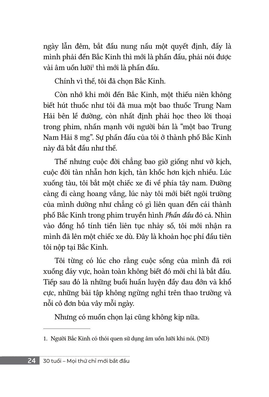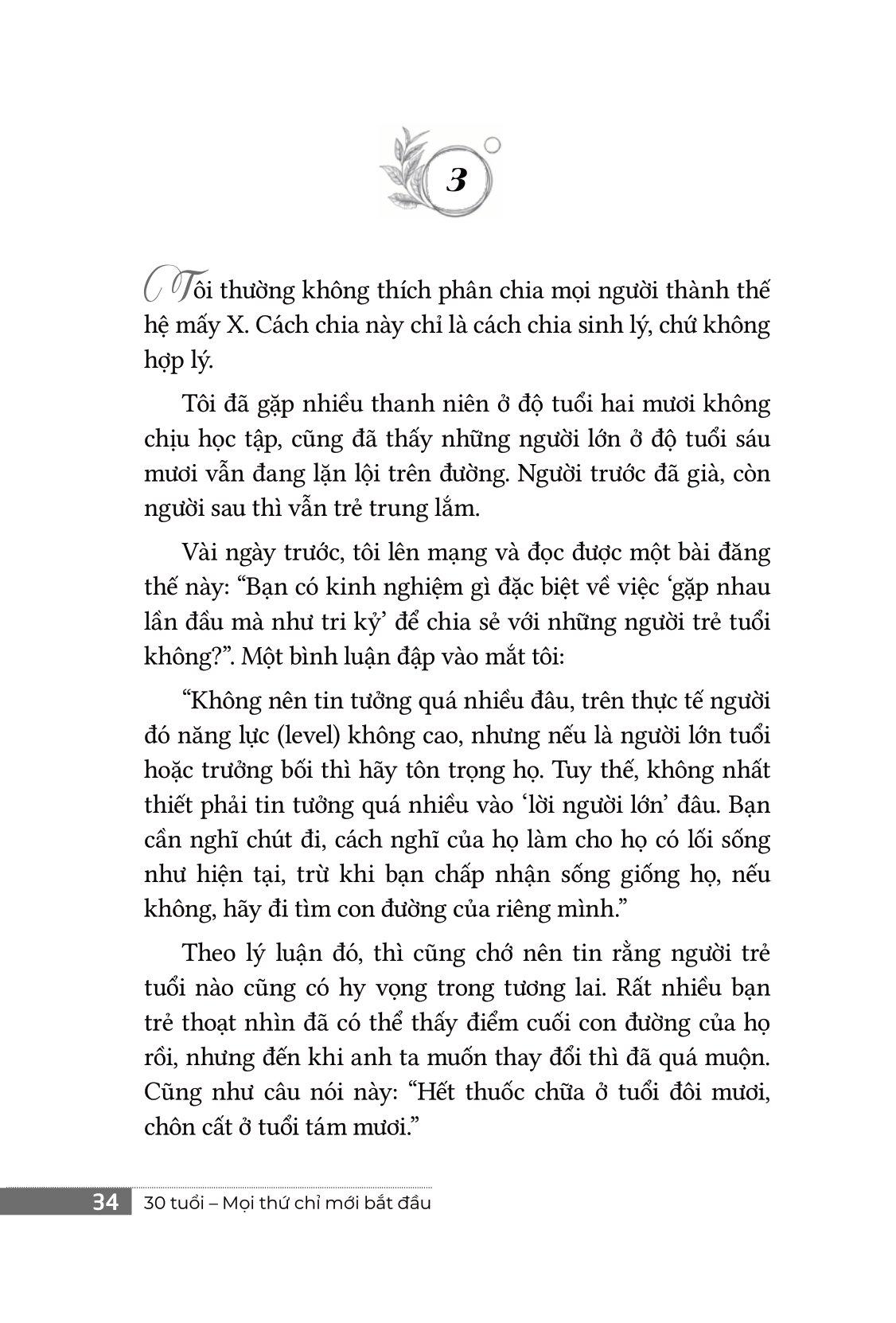 “Bởi vì, ba mươi tuổi mọi thứ chỉ mới bắt đầu. Đừng sợ đau khổ. Tất cả những khổ đau phải trải qua ở tuổi đôi mươi đều là món quà của cuộc sống.”