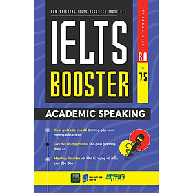 IELTS BOOSTER ACADEMIC SPEAKING sẽ là chìa khóa để bạn phá giải những lời nguyền nâng điểm. Cuốn sách bám sát những tiêu chí đánh giá của ban giám khảo, tiếp cận toàn diện các phần thi theo từng dạng bài và chủ đề thường gặp. IELTs Booster sẽ giúp thí sinh giải mã những câu hỏi “khó nhằn” thường khiến thí sinh mất điểm với các mẹo hay về từ vựng và mẫu câu. Hơn hết, cẩm nang trên tay này sẽ giúp bạn xây dựng nền tảng vững chắc để nhanh chóng chinh phục band điểm mục tiêu với kỹ năng Speaking.