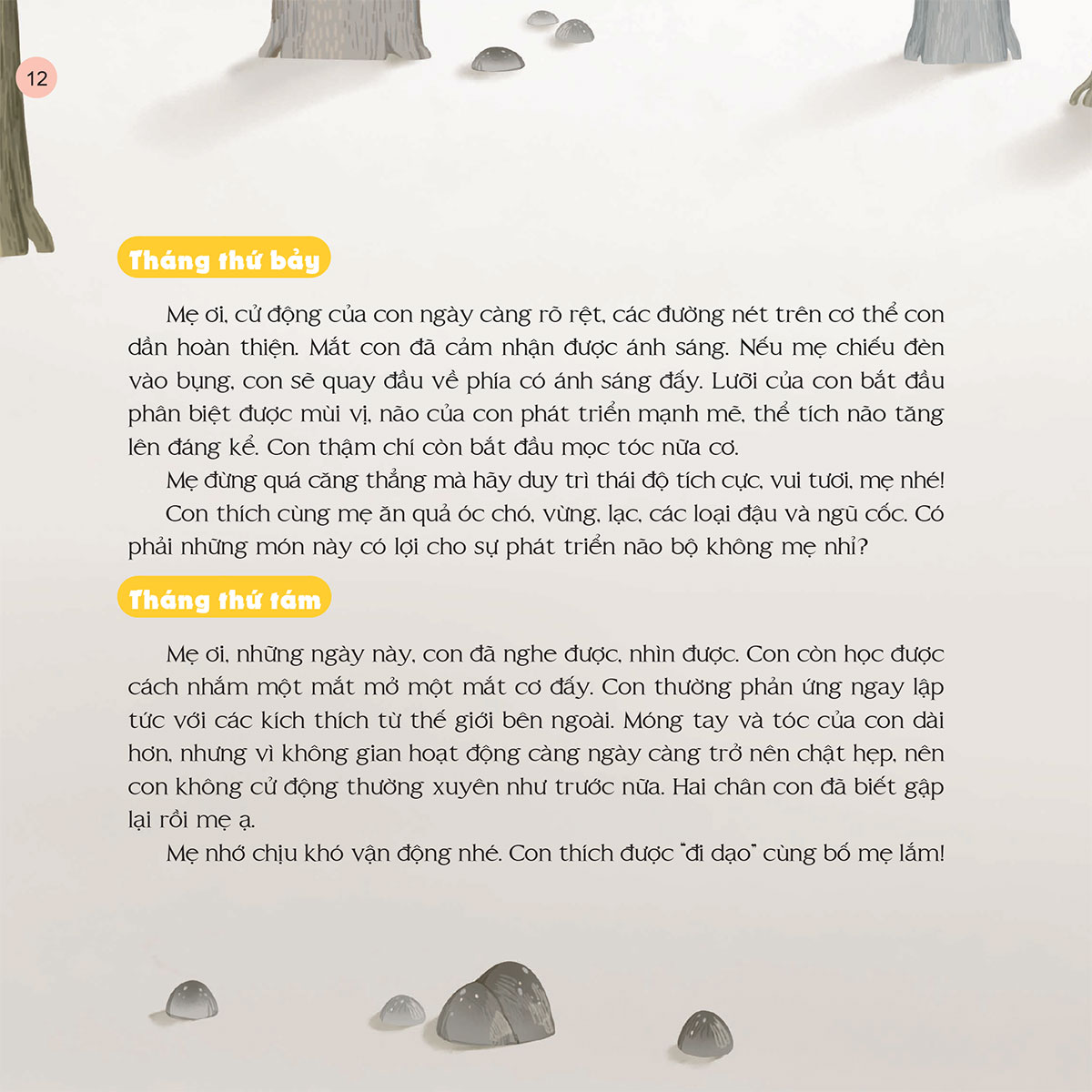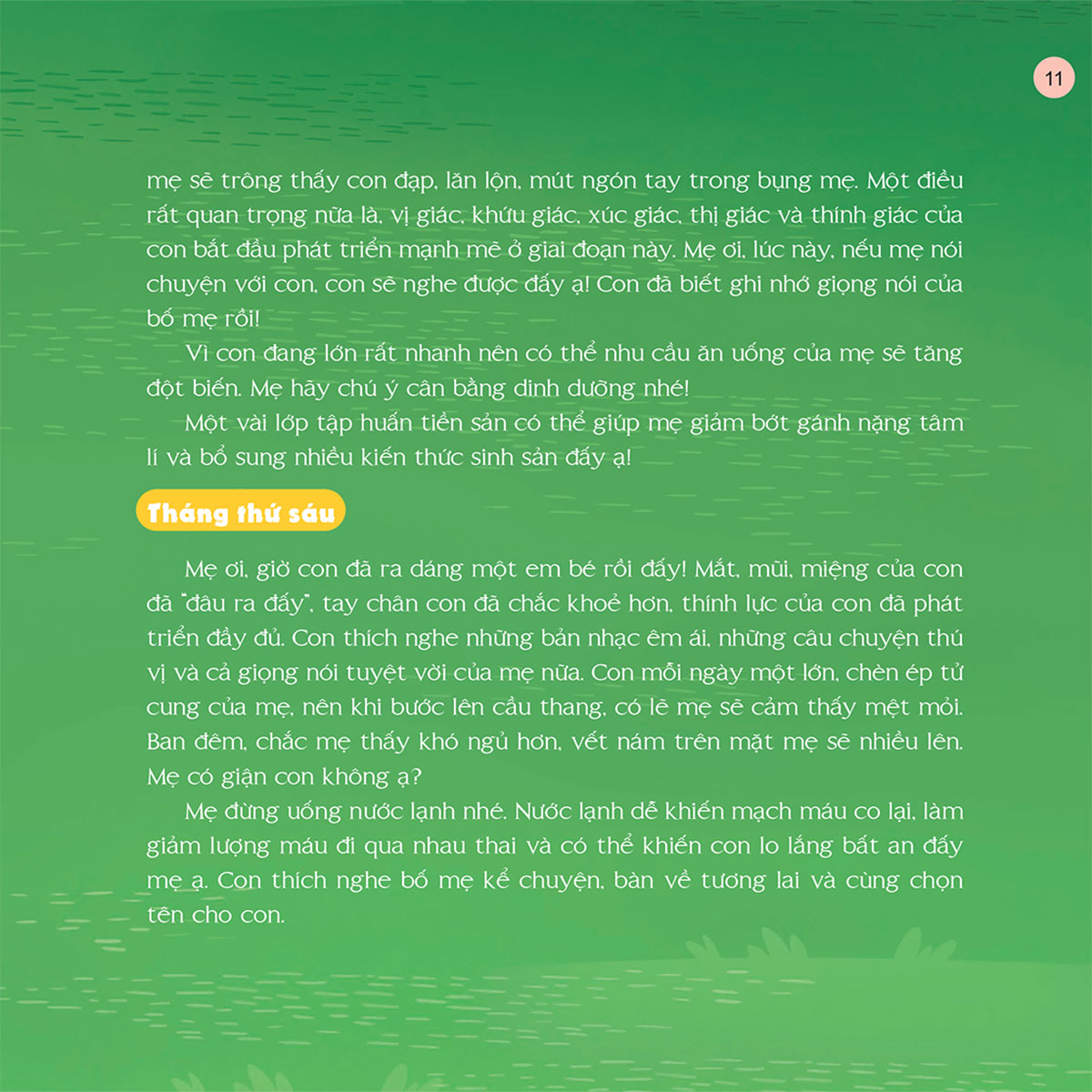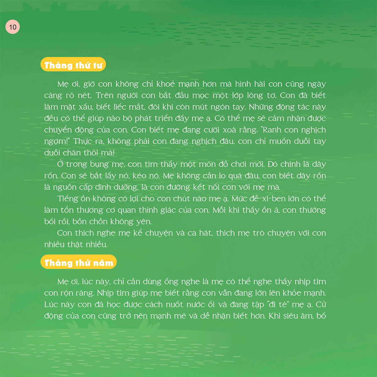 Cuốn sách này tuyển chọn những câu chuyện thai giáo thú vị để giúp các bố mẹ gắn kết tình cảm, kích thích não bộ, vun đắp trái tim biết yêu thương cùng những phẩm chất tốt đẹp cho bé ngay từ khi còn trong bụng mẹ. Những câu chuyện sinh động, tích cực, ngập tràn niềm vui trong sách sẽ dần gợi ra cho bé những tri thức về thế giới rực rỡ muôn màu và cha mẹ bé sẽ được trải nghiệm hành trình mang thai đong đầy yêu thương và hạnh phúc.